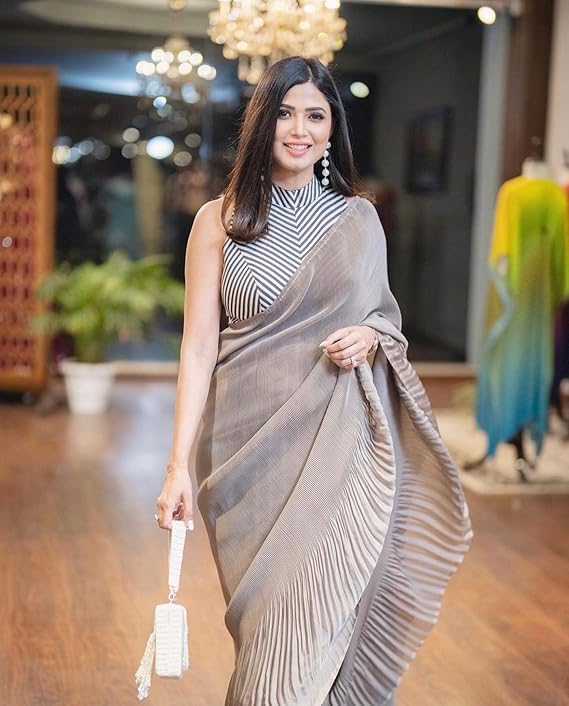 βœ¨πŸ‘— Zivara Crush Chinon Silk Saree – Elegant Pleated Party Wear Saree with Stylish Digital Print Blouse, Perfect for Festive & Special Occasions (Free Size) πŸ’–