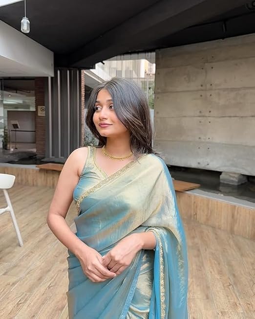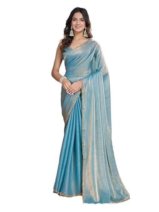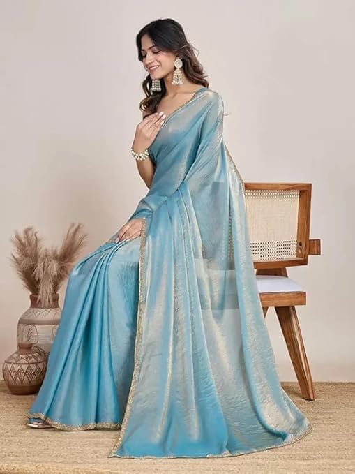 β¨π Zivara Elegant Blue Party Wear Saree β Premium Twill Net Saree with Rich Shimmer Border Look & Soft Chiffon Blouse Piece, Perfect for Weddings, Parties & Festive Occasions (Free Size) π